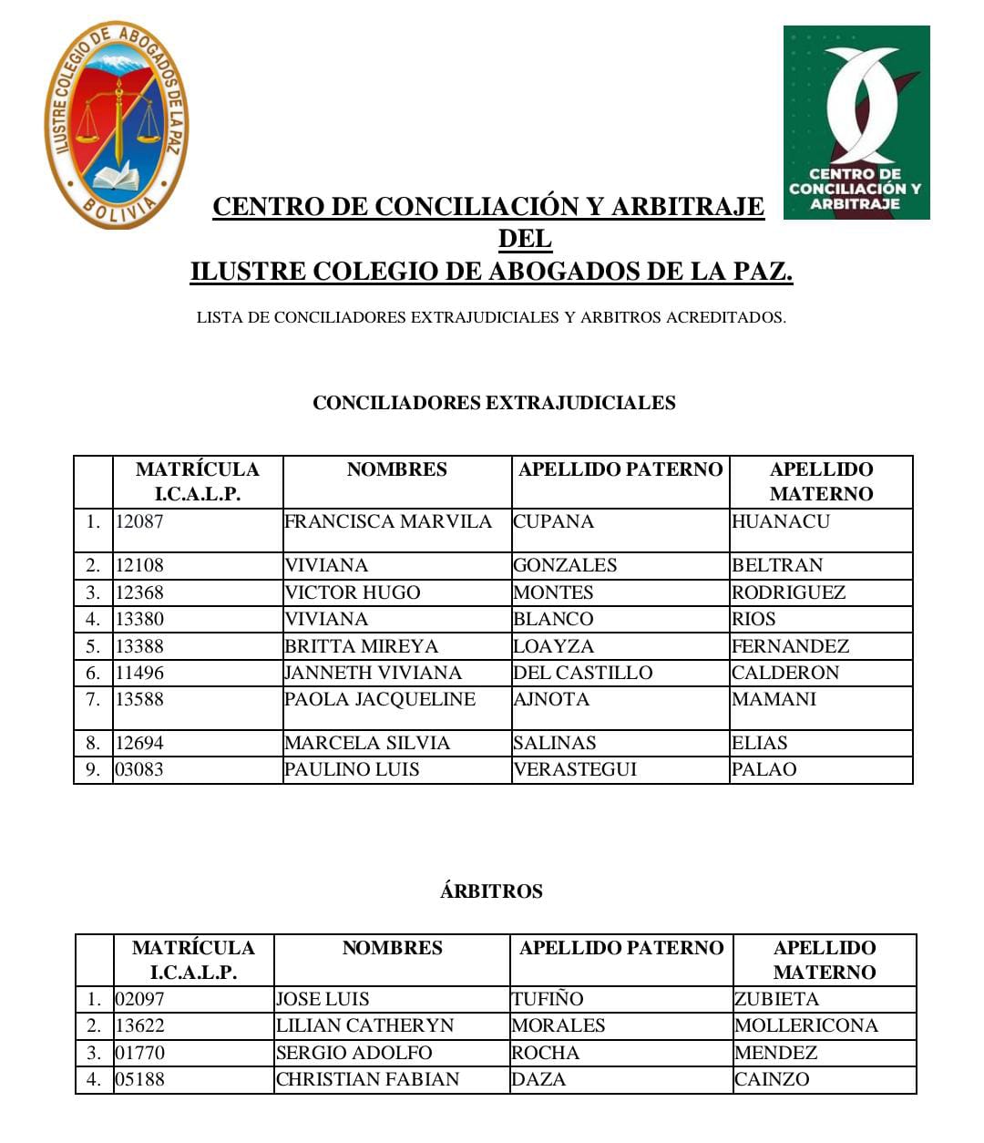 Nos complace invitarlos al Centro de Conciliación y Arbitraje del Colegio de Abogados de La Paz, donde podrán encontrar una alternativa eficiente y efectiva para resolver conflictos y disputas de manera pacífica.